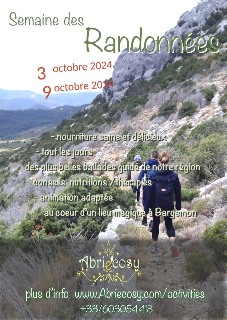 toutes les journées sont animées par nous. Si vous désirez des massages ou des autres thérapies (voir notre liste sur notre site), c’est disponible sur demande.