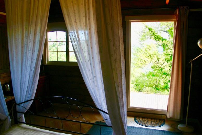 The Scorpiolodge is a romantic chalet in bed and breakfast style. The smell of wood inside, a canopy bed, a mini fridge, a bathroom and a cute terrace with view over the mountains, makes it our favorite cosy place. The terrace has the morning sun. The ideal room to be surrounded by nature.